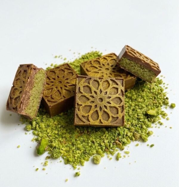 Vo vnútri každého kúsku sa ukrýva lahodná náplň inšpirovaná dezertom kadaif -jemné vlákna cesta prepojené s krémovou sladkou plnkou, ktorá sa dokonale dopĺňa s kvalitnou čokoládovou polevou. Ideálna ako darček alebo sladké potešenie pre výnimočné chvíle. Ručne vyrábané s dôrazom na kvalitu a chuť.